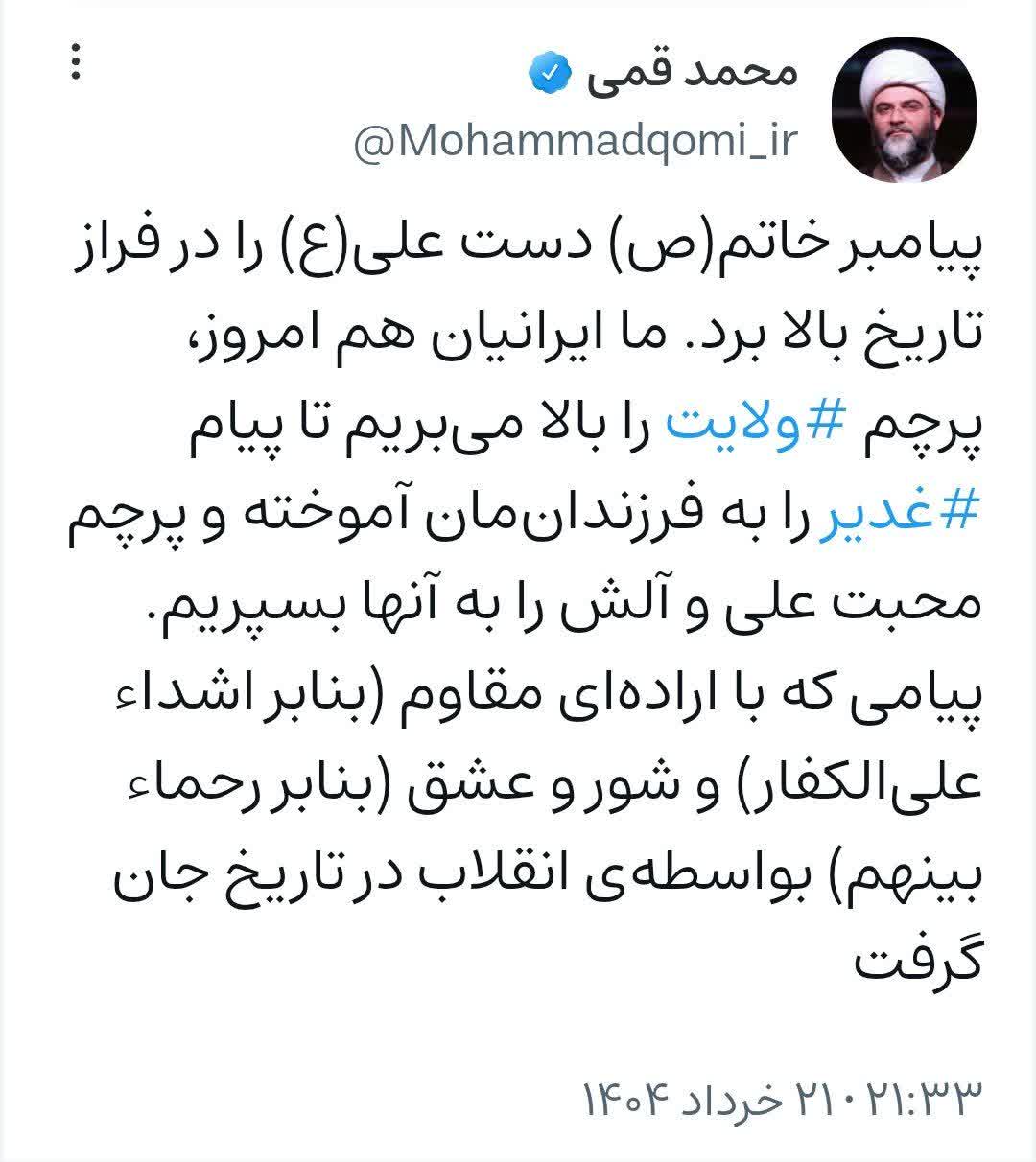 ۲۱ خرداد | حجتالاسلام قمی در صفحه شخصی خود نوشت؛