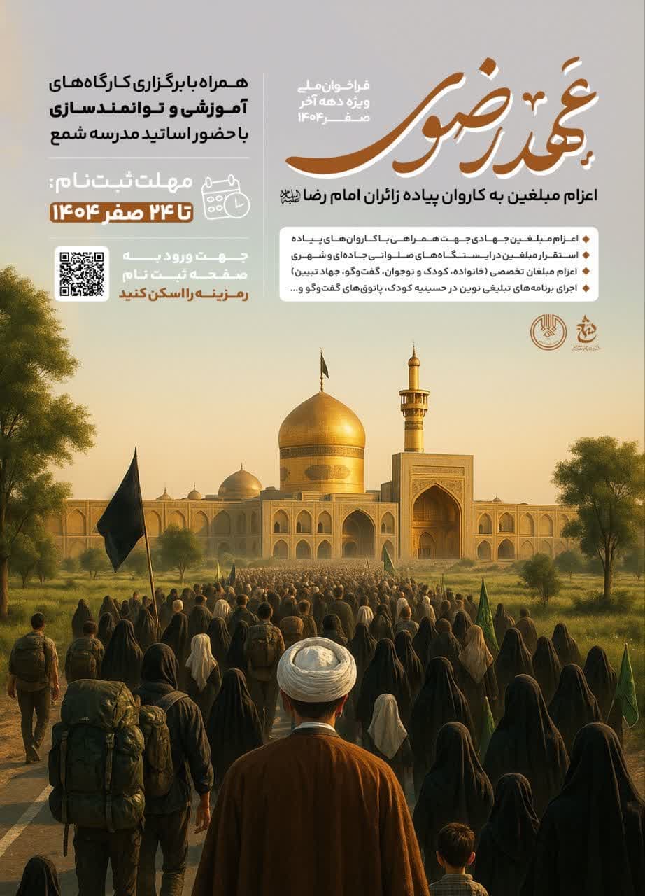 همزمان با نزدیک شدن دهه پایانی ماه صفر و پیش‌بینی حضور پرشور زائران در حرم مطهر امام رضا (ع)، اداره تبلیغات اسلامی خراسان رضوی با همکاری اداره کل امور مبلغین، قرارگاه تبلیغی «عهد رضوی» را با هدف سازماندهی و اعزام بیش از یک‌هزار مبلغ جهادی از سراسر کشور راه‌اندازی کرد.