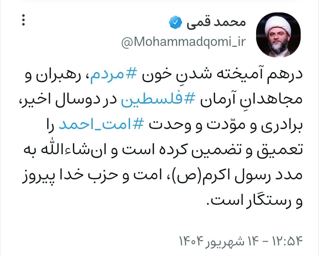 ۱۴ شهریور | پیام حجت‌الاسلام قمی به مناسبت هفته وحدت؛