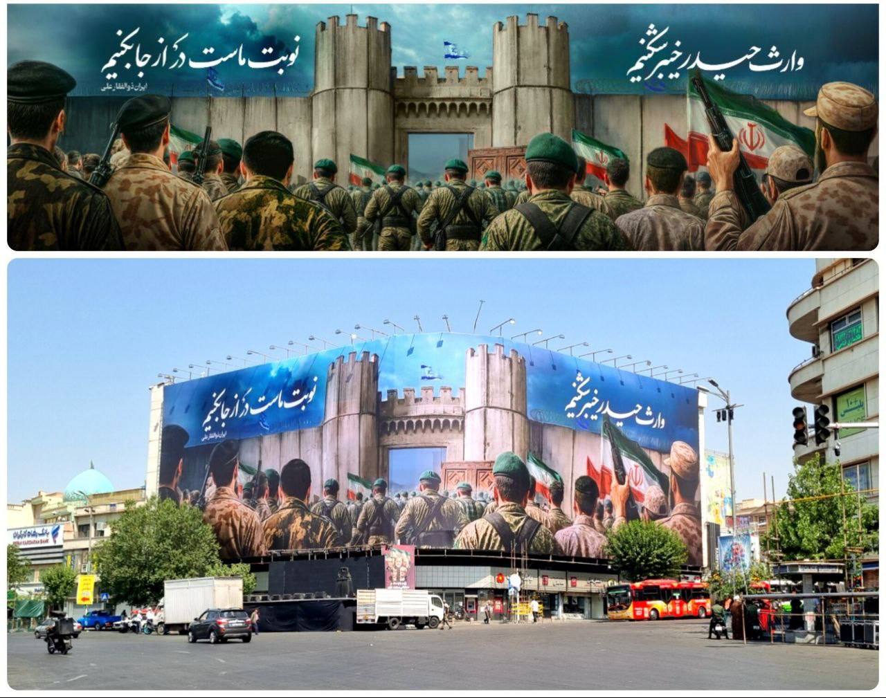 در آستانه برپایی تجمع بزرگ مردمی علیه رژیم صهیونیستی در روز عید غدیر، دیوارنگاره میدان انقلاب تهران با شعار «ایران، ذوالفقار علی‌(ع)» رونمایی شد. این دیوارنگاره با محوریت یادآوری فتح خیبر و بیت‌ «وارث حیدر خیبرشکنیم / نوبت ماست که در از جا بکنیم» به نمایش درآمد.