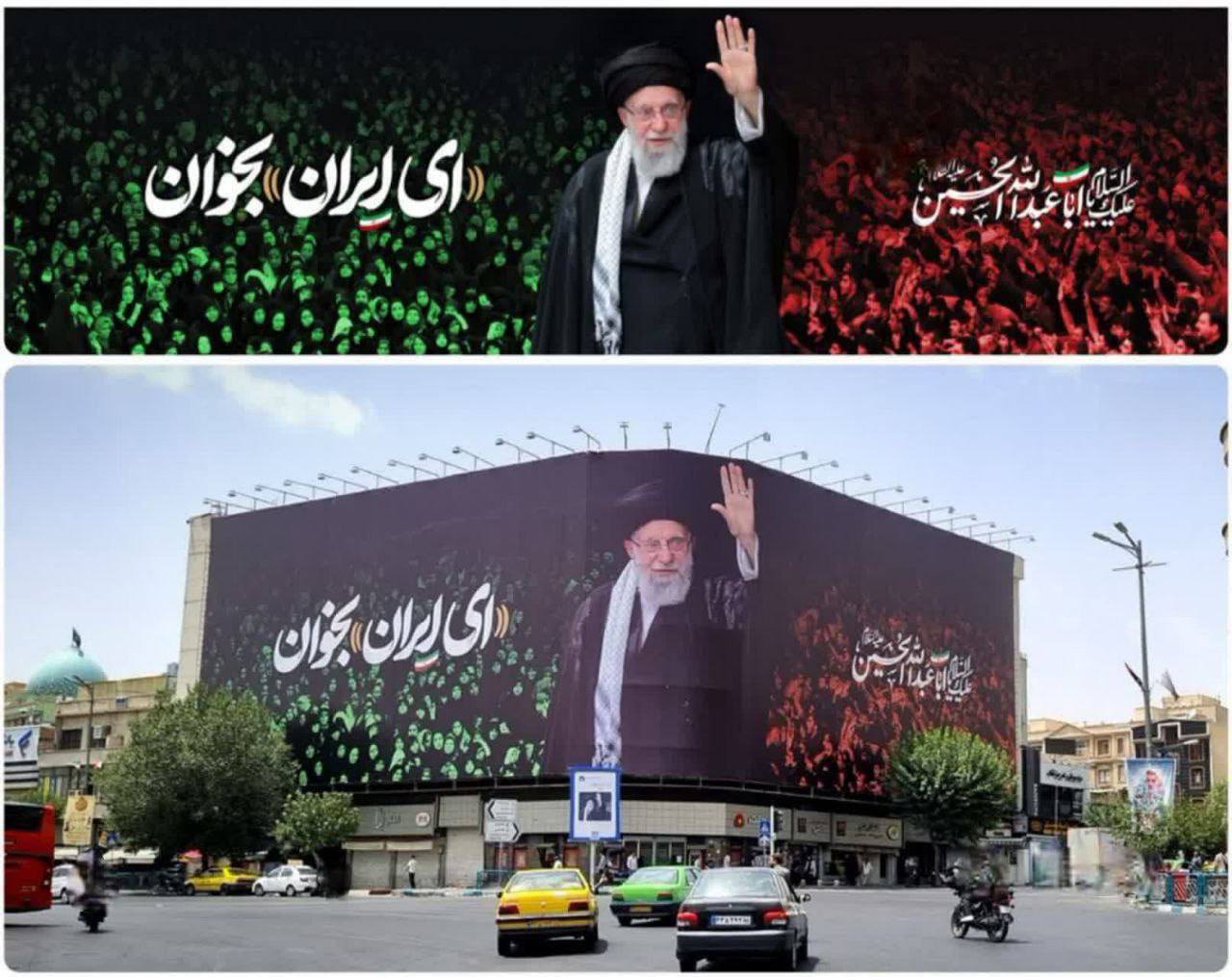 درحالی که رسانه‌های معاند حتی در روزهای پس از آتش‌بس به دروغ‌سازی‌های خود ادامه می‌دادند، همزمان با شب عاشورای حسینی، عزاداران حاضر در حسینیه امام خمینی (ره)، چشم‌شان به جمال رهبر معظم انقلاب روشن شد. آیت‌الله خامنه‌ای باحضور مقتدرانه و پرصلابت خود، تمام آن دروغ‌های واهی را نقش بر آب کردند. خواسته رهبری از مداح جلسه برای آن که «ای ایران» بخواند، دستمایه  تصویر دیوارنگاره میدان انقلاب شد.
