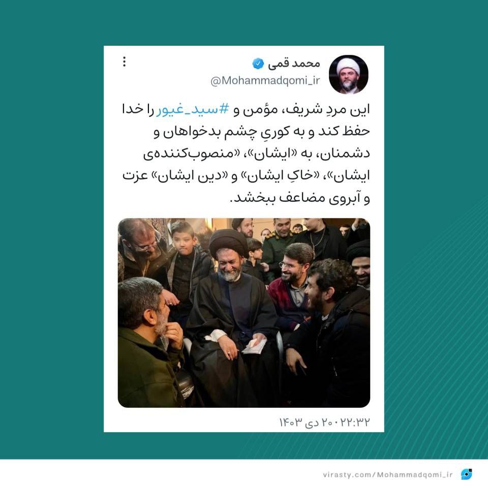 به گزارش روابط عمومی سازمان تبلیغات اسلامی، حجت الاسلام محمد قمی، رئیس سازمان تبلیغات اسلامی در واکنش اظهارات اخیر یک مقام کشور همسایه درباره حجتالاسلام عاملی، امام جمعه اردبیل در شبکه ویراستی متنی نوشت.