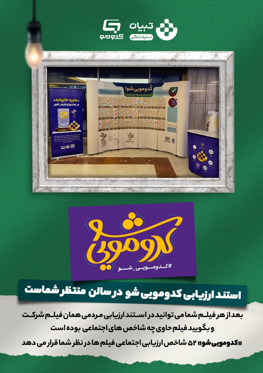 به گزارش روابط عمومی سازمان تبلیغات اسلامی، این روزها که در برج میلاد و بقیه سالنهای نمایش فیلمهای جشنواره فجر اکران میشود، تابلو و استندهایی ویژه کدومو برای ارزیابی مردمی فیلمهای جشنواره فیلم فجر نصب شده است.