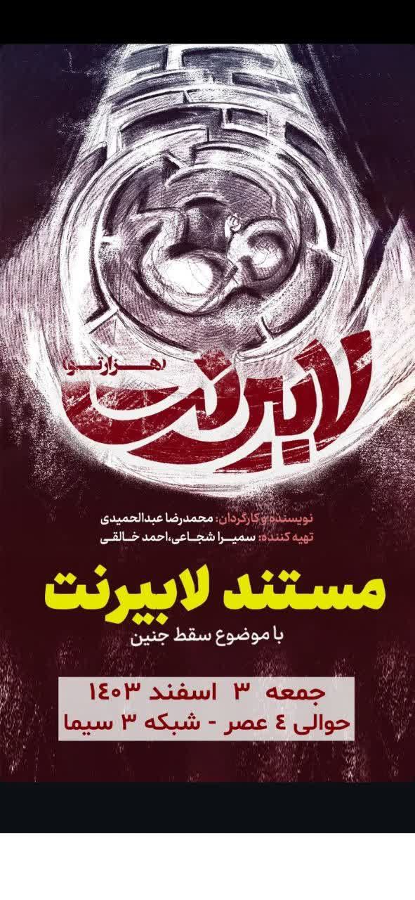 مستند «لابیرنت» به کارگردانی محمدرضا عبدالحمیدی با نگاهی تازه به مسئله سقط جنین پرداخته است که جمعه ۳ اسفند ، ساعت ۱۶ از شبکه سه سیما پخش میشود.