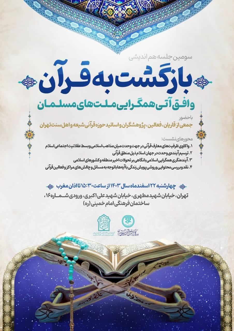 نشستی علمی و معنوی با حضور قاریان، پژوهشگران و اساتید قرآنی از مذاهب شیعه و اهل سنت برگزار شد. این نشست با محوریت بازگشت به قرآن کریم بهعنوان راهبرد اصلی تقویت وحدت امت اسلامی و بررسی راهکارهای همگرایی ملتهای مسلمان برگزار گردید.